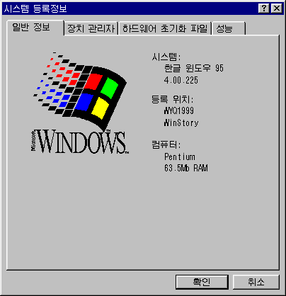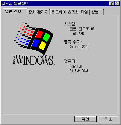 文件:Windows95-4.00.225-Korean-SystemProperties.png