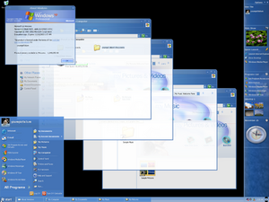 桌面合成引擎从 Build 3683 开始首次出现,但处于 bug 状态,仅呈现窗口透明度。从 Build 3706 到 Build 4005,在最小化或关闭窗口时添加了新的旋转效果,并包含一个用户界面,允许用户在启动时或通过动态控制启用 DCE。