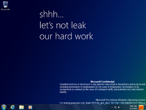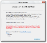 A new Microsoft Confidential banner has been introduced, both on top of the leak warning and in place of the original winver branding from Windows 7. The operating system name has also changed to Microsoft Pre-release Windows Operating System. The copyright date in winver has been updated to 2010.